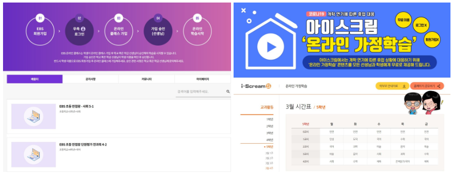 지금은 가정에서도 학습을 할 수 있도록 원격수업을 준비하고 있습니다. 원격수업은 온라인 개학 전인 현재, 학교 진도에 포함되지 않는 자율학습인데요. 현재 저는 EBS온라인클래스나 아이스크림 가정학습을 이용하고 있습니다. 이 밖에도 e학습터, 위두랑, 교사온 등을 각 학교에서 선택해 적극적으로 이용하고 있습니다.