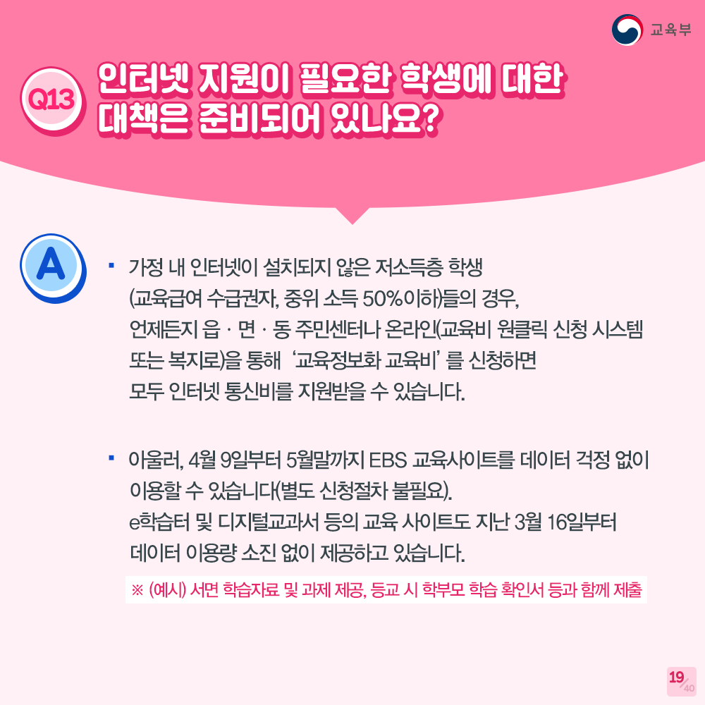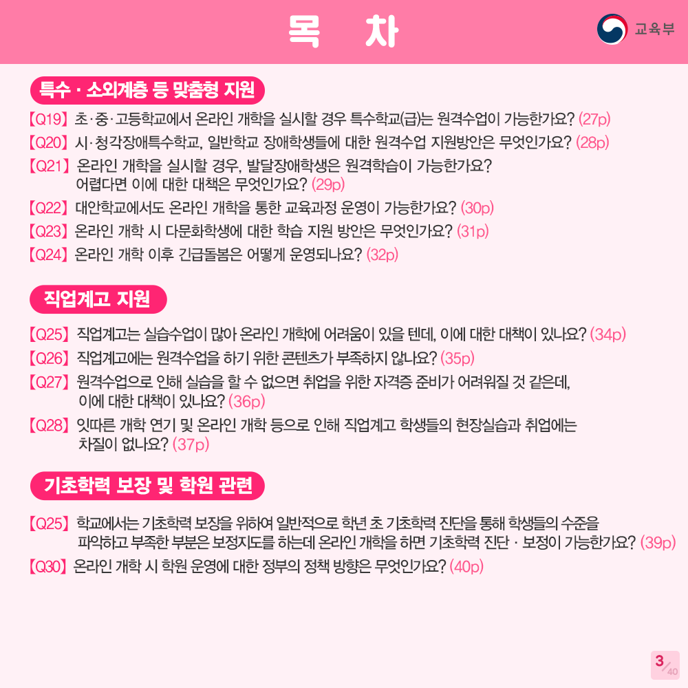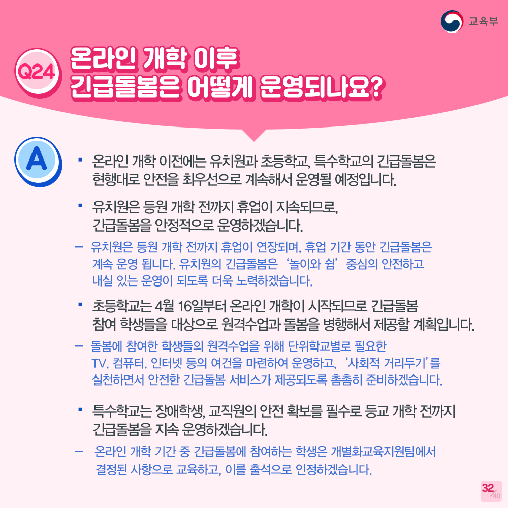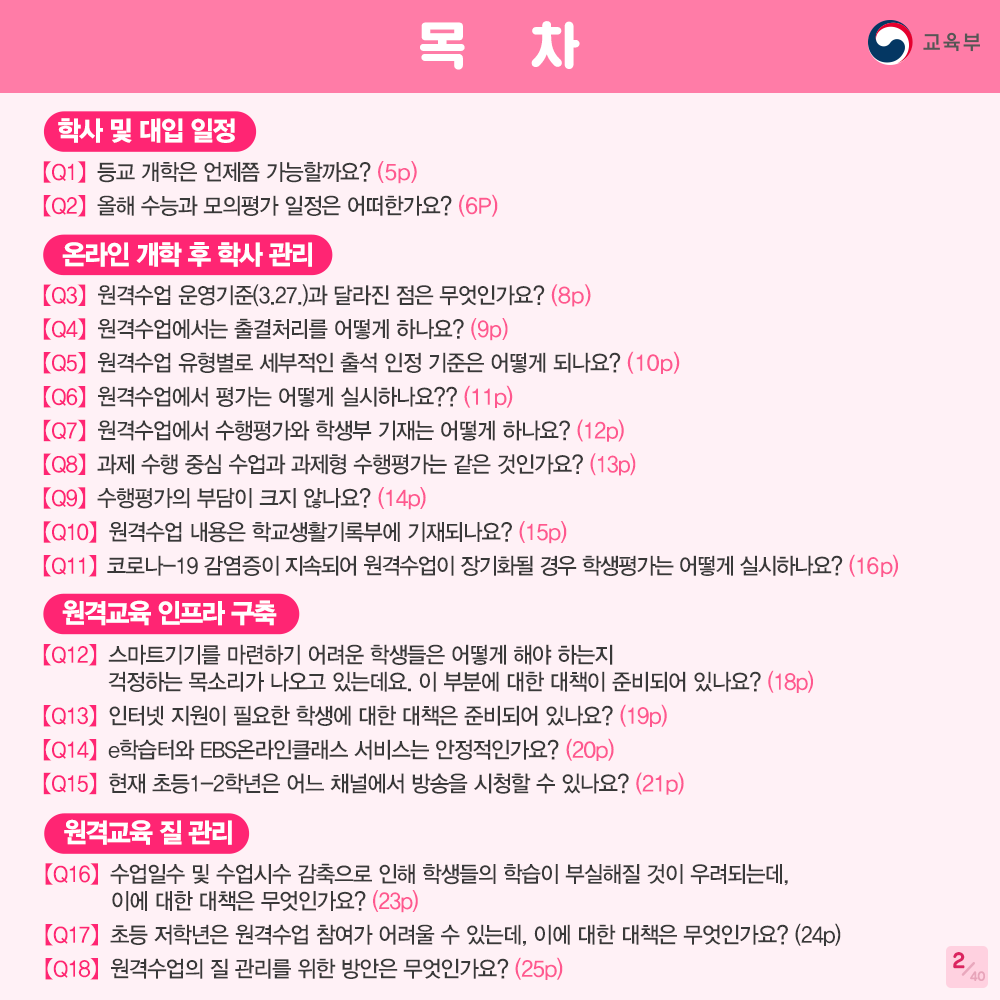 2020년 신학기 온라인 개학과 관련하여 궁금한 점을 모아모아 답변드립니다.