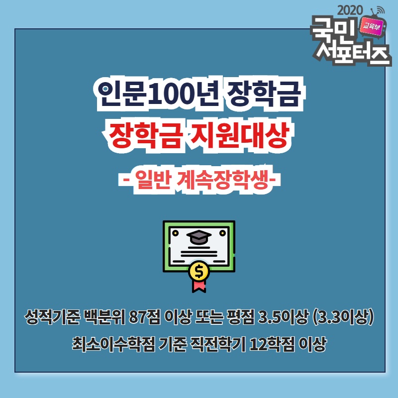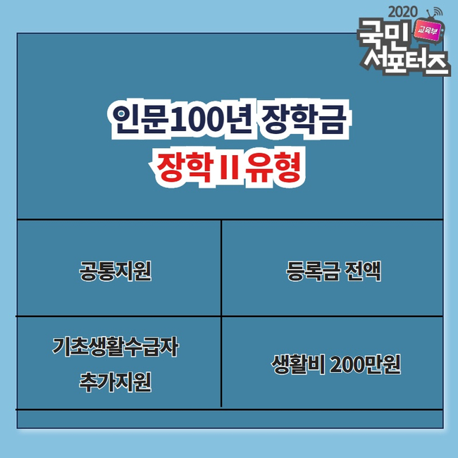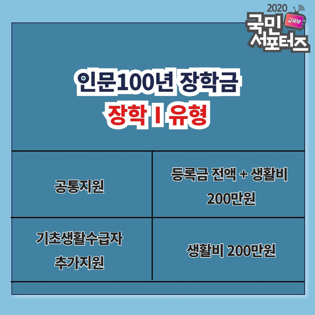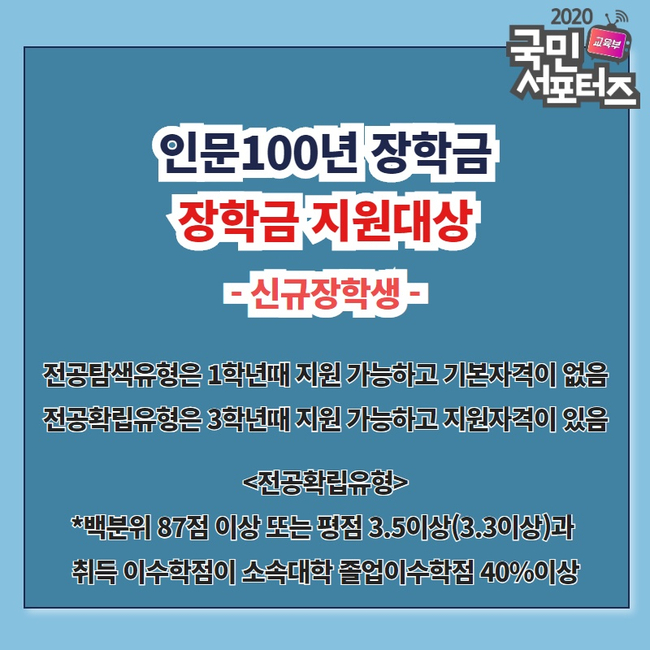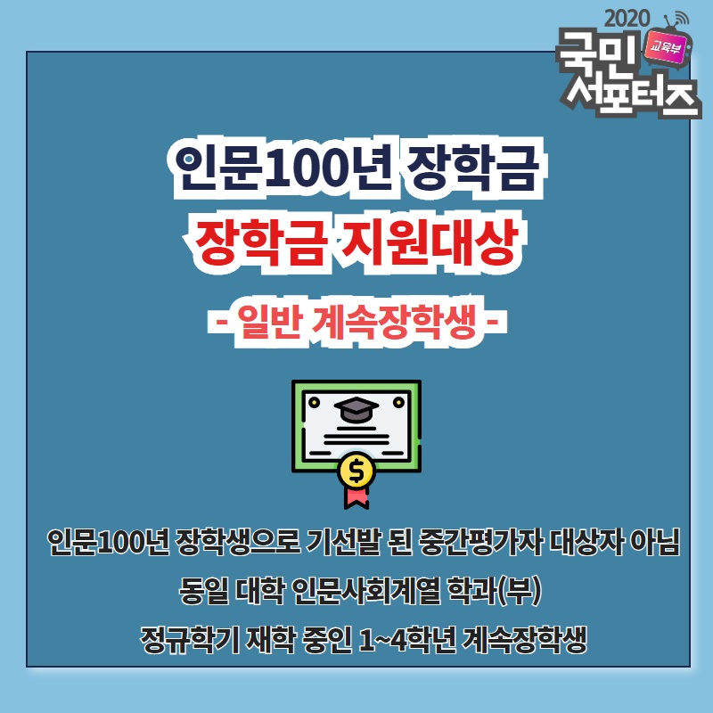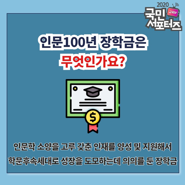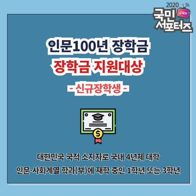 인문 100년 장학금 지원 대상과 장학금액