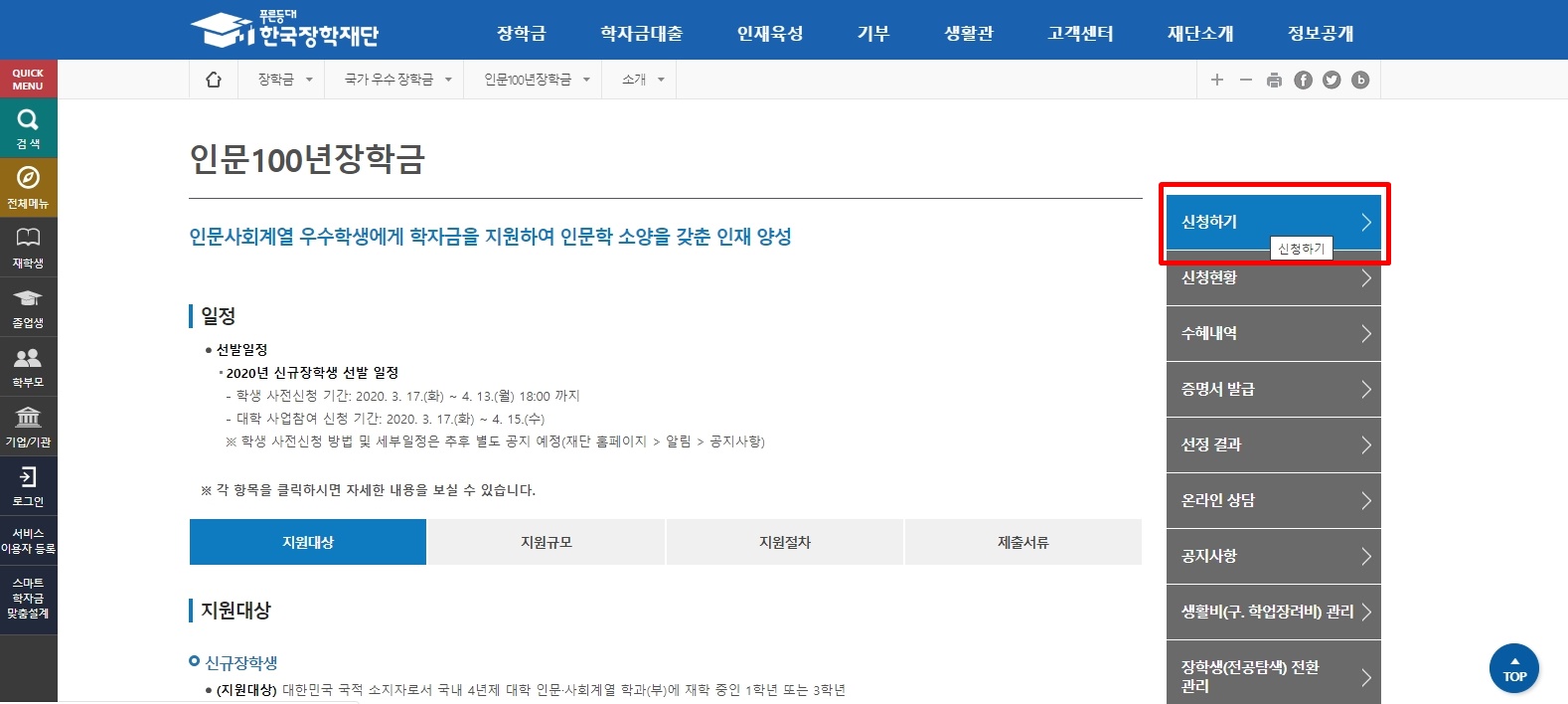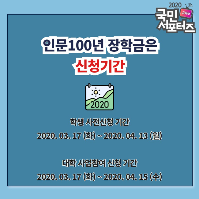 인문 100년 장학금 신청 기간 및 지원방법