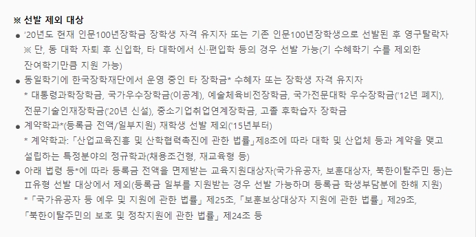 하지만 신규 장학생으로 선발에서 제외되는 대상도 있는데요. 아래 사진을 참고해 주세요.
