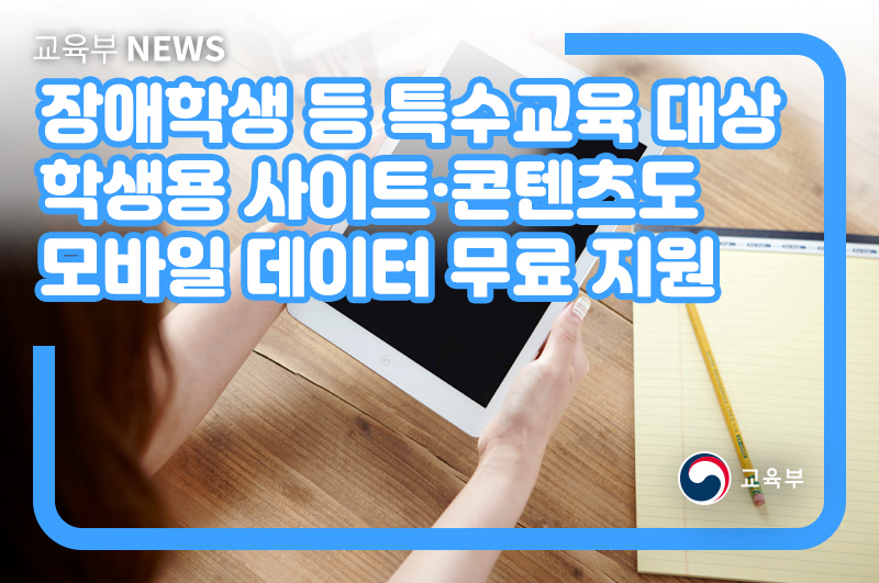 장애학생 등 특수교육 대상 학생용 사이트·콘텐츠도 모바일 데이터 무료 지원 본문