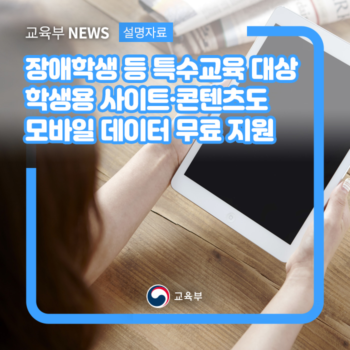 장애학생 등 특수교육 대상 학생용 사이트·콘텐츠도 모바일 데이터 무료 지원 본문