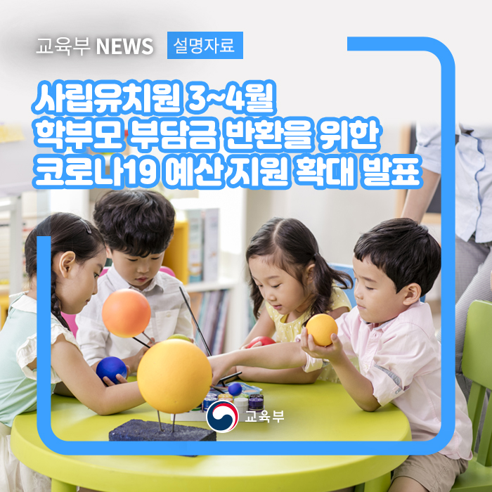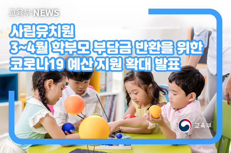 사립유치원 3~4월 학부모 부담금 반환을 위한 코로나19 예산 지원 확대 발표