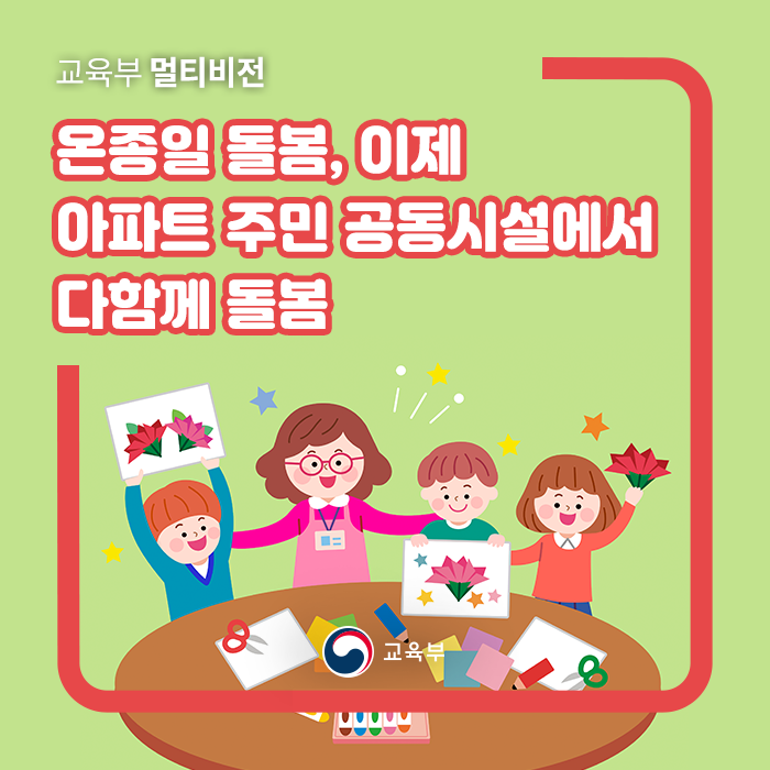 더 많은 아이들이 돌봄을 받을 수 있도록 #온종일돌봄 확대를 위해 아파트 주민공동시설을 활용해 다 함께 돌봅니다~