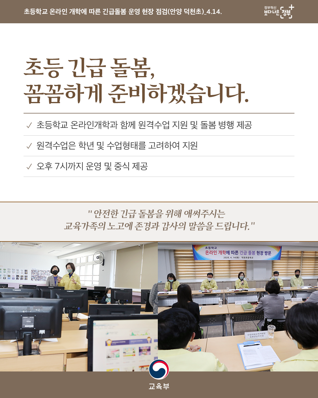 안전한 긴급 돌봄을 위해 애써주시는 교육가족 여러분,