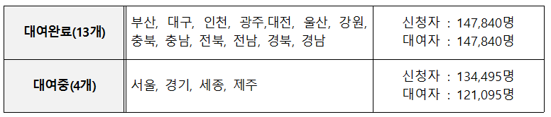 - (대여 상황)4.13일 스마트기기 대여 신청자는 28.2만명, 13개 교육청은 신청자 전원 147,840명에 대여 완료, 4개 교육청은 대여를 추진 중