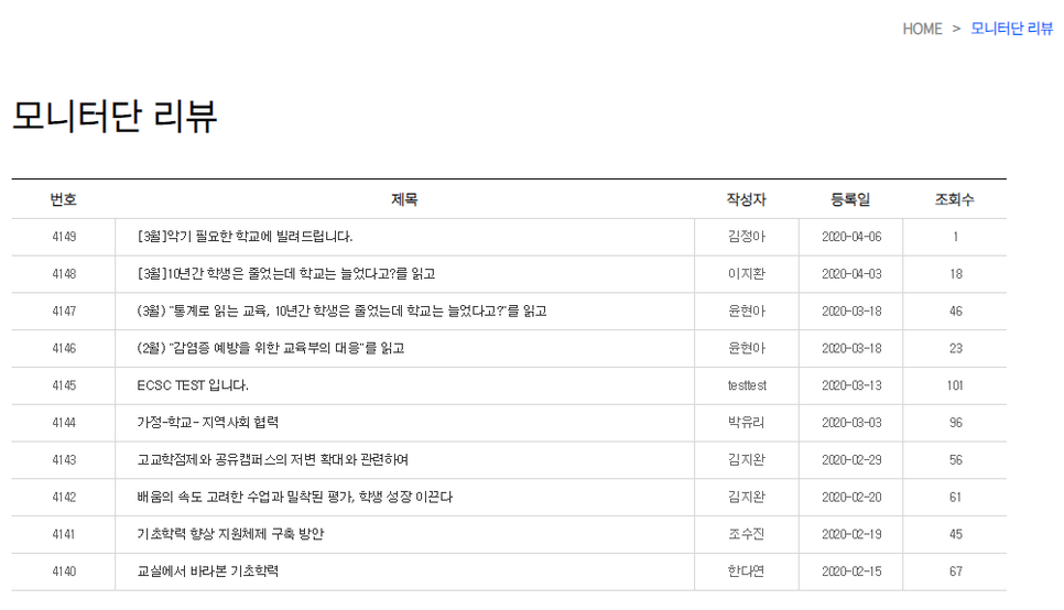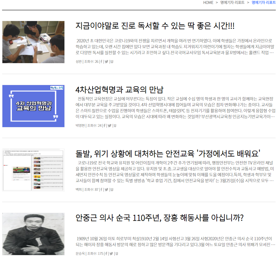 마지막으로 ‘명예기자 리포트’ 테마에서는 ‘행복한 교육’ 소속 명예기자들이 취재한 교육현장 소식을 담고 있었는데요. 교육과 관련된 다방면의 주제가 소개되어 있어서 읽는 재미가 있었습니다. 전국 방방곡곡의 교육 소식을 접하며 몰랐던 정보를 쉽게 알 수도 있었어요. '모니터단' 테마는 '행복한 교육'을 읽은 독자들의 소감을 담고 있었는데요. 명예기자 리포트와 모니터단의 글을 읽으며 많은 공감이 되더라고요.