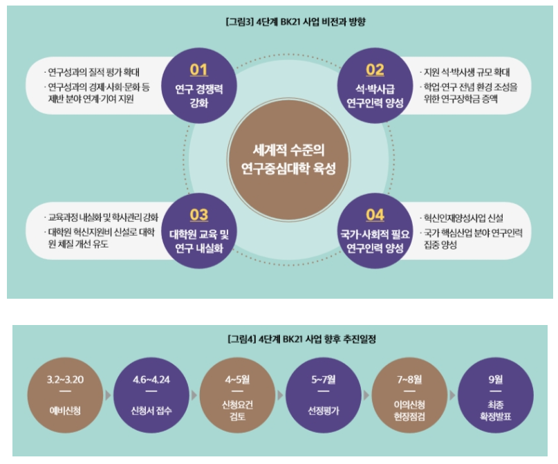 ‘정책’ 테마에서는 BK21 사업을 중심으로 교육부의 여러 정책을 확인할 수 있었습니다. 저는 최근 많은 관심을 받고 있는 교육부의 [4단계 두뇌한국21 사업]에 대한 개념을 명료하게 알 수 있었는데요. BK21 사업의 중점 추진사항을 단계별로 제시함과 동시에 시각적 자료를 활용하여 이해에 도움을 주었습니다. 하나의 교육 사업을 명확히 알기 위해서는 교육부의 관련 자료를 직접 찾아볼 수밖에 없는데요. 이렇게 요약된 자료를 보니 더욱 쉽게 내용을 이해할 수 있었습니다.