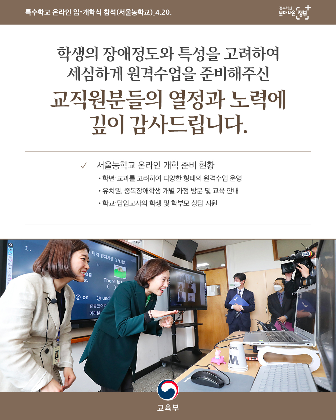 [특수학교 온라인 개학식 및 원격수업 현장점검] 본문