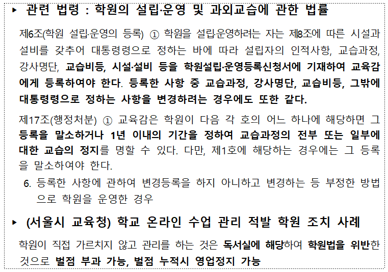 학원의 ‘학교 온라인 수업 관리 행위’ 집중 관리