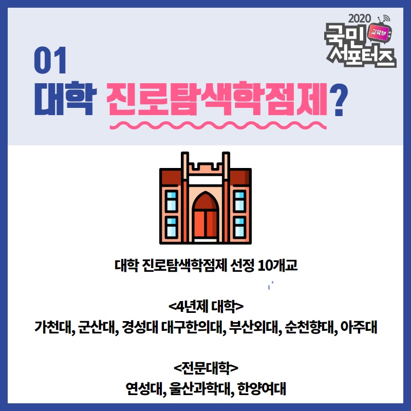 \오늘은 대학 진로탐색학점제에 대해 알아봤습니다. 아주대학교, 이화여자대학교, 건국대학교의 사례처럼 올 한해 대학 진로탐색학점제가 좋은 성과를 거두어 많은 많은 대학생들이 자신의 적성에 맞는 다양한 활동을 할 수 있으면 좋겠습니다.