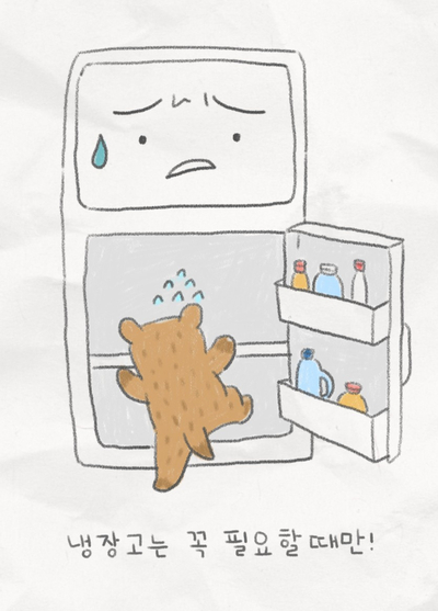 아이들은 하루에도 수차례씩 냉장고 문을 열었다 닫았다 하죠. 그런데 바로 이 냉장고를 여닫는 행위가 지구의 오존층 파괴의 주범이라는 충격적인 사실! 오존층은 자외선을 차단해 주는 아주 중요한 존재인데 냉장고를 여닫으면서 발생되는 프레온 가스가 오존층을 심각하게 파괴한다고 합니다. 아이들에게 이 사실을 알려주시고 냉장고를 최소한으로 여닫도록 지도해 주신다면 지구의 오존층을 보호할 수 있을 거예요.