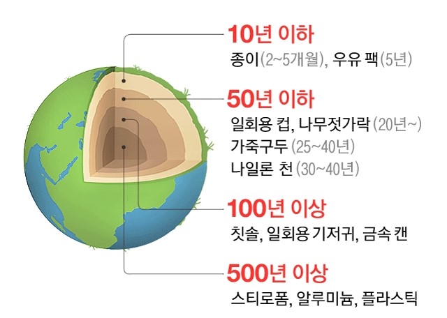 또한 아이들에게 각종 폐기물이 분해되는데 걸리는 시간이 어느 정도인지를 알려주신다면 아이들 스스로 환경오염의 심각성과 일회용품 과다 사용의 파괴력을 깨달을 수 있을 거예요.