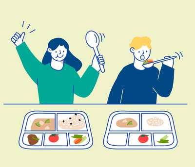 한창 많이 먹고 쑥쑥 자랄 나이지만 그렇다고 해서 처음부터 너무 많은 양의 음식을 담아 잔반을 남기게 되면 이는 곧바로 환경파괴로 이어집니다. 음식물 쓰레기는 땅에 묻혀 썩으며 대표적인 온실가스인 ‘메탄가스’를 배출하는데, 이 메탄가스가 바로 환경파괴의 주범이기 때문이죠. 따라서 아이들이 적당량의 음식만 덜어서 먹고 잔반을 많이 남기지 않도록 지도하는 것이 중요합니다.