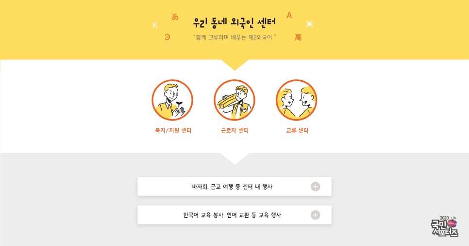 국내 거주 외국인의 정착과 생활을 지원하는 복지센터 등의 단체가 여러 지역에 걸쳐 운영되고 있습니다. 각 기관별로 상이하지만, 언어 교환이나 바자회 같은 행사를 정기적으로 개최하기도 하는데요. 기회에 따라 한국어 봉사나 단체 여행과 같은 행사에 역시 참여할 수 있습니다