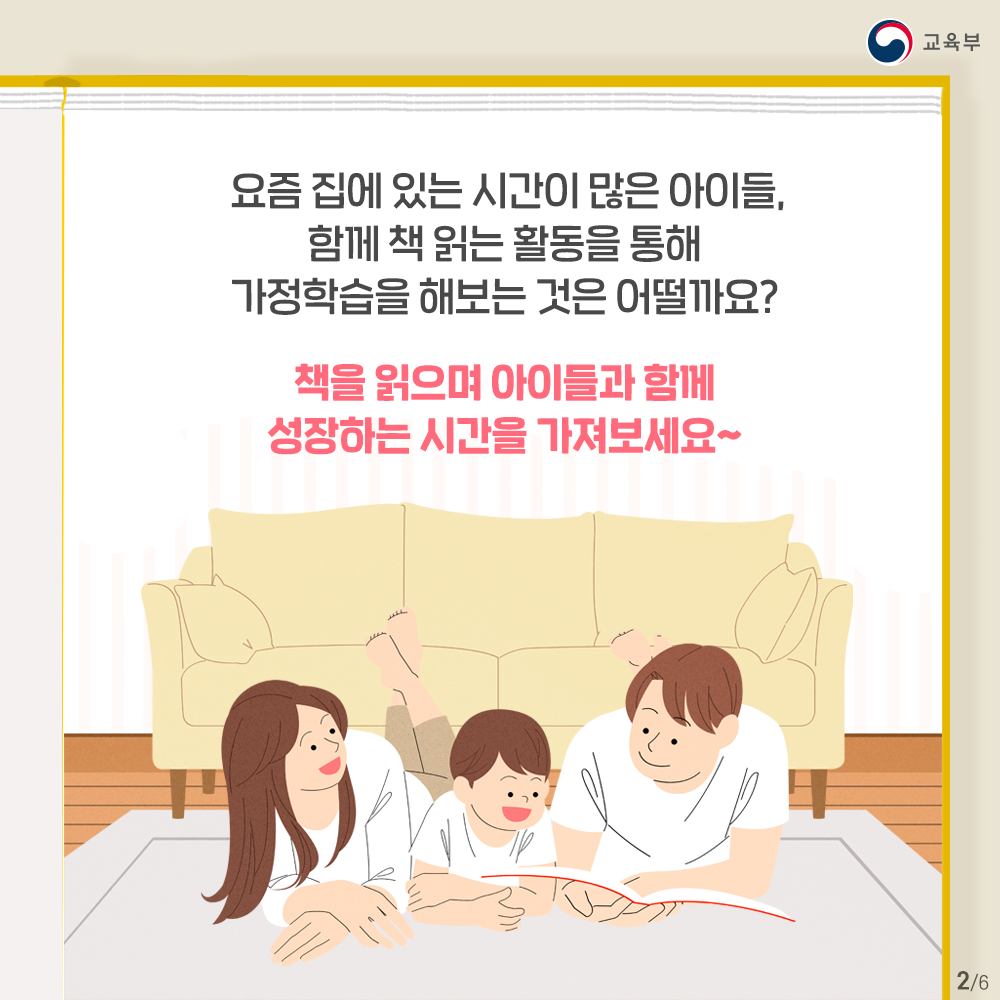 함께 책 읽는 활동을 통해 가정학습을 해보는 것은 어떨까요?