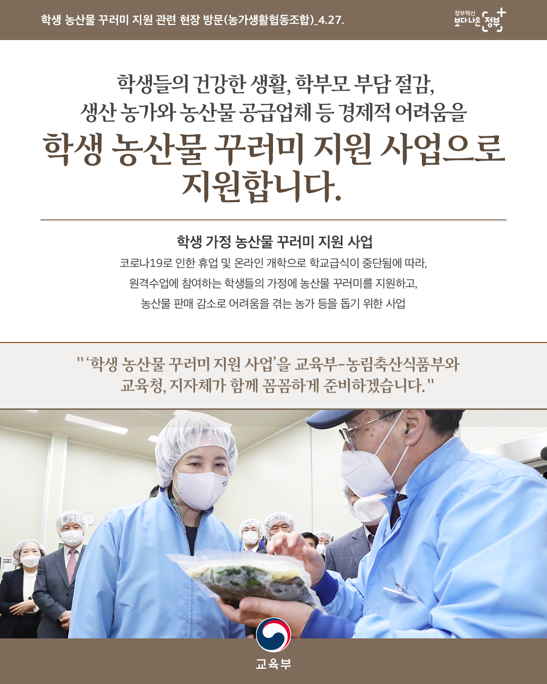 [학생 농산물 꾸러미 지원 관련 현장 방문] 본문