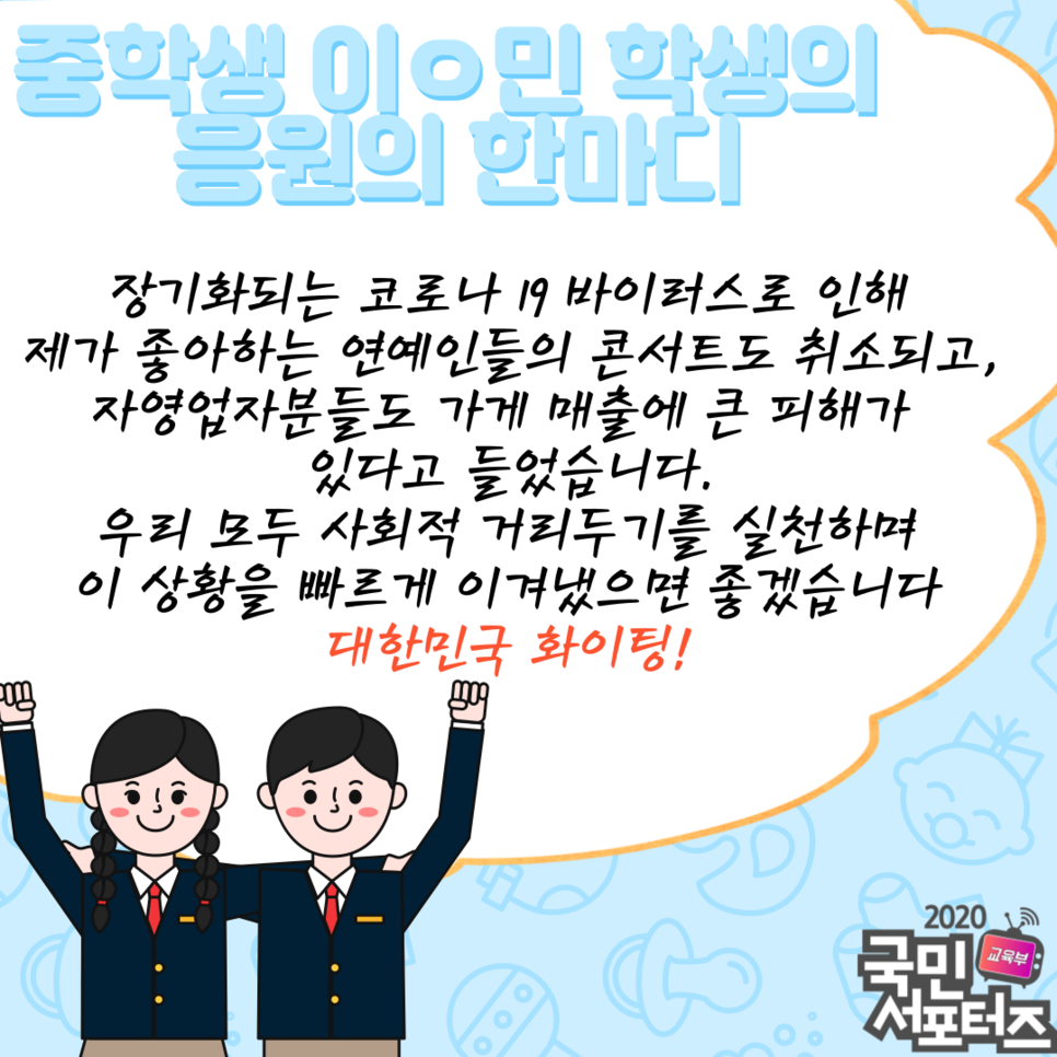 ※위 기사는 2020 교육부 국민서포터즈의 의견으로 작성되었습니다.