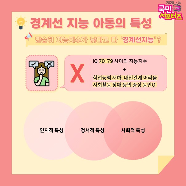 다음으로는 잠깐 언급했던 경계선 지능 아동의 특성에 대해 알아보겠습니다. 여기서 잠깐, 단순히 지능지수가 낮다고 다 경계선 지능에 해당한다고 볼 수 있을까요?