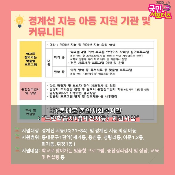 경계선 지능 아동 지원 기관 및 커뮤니티