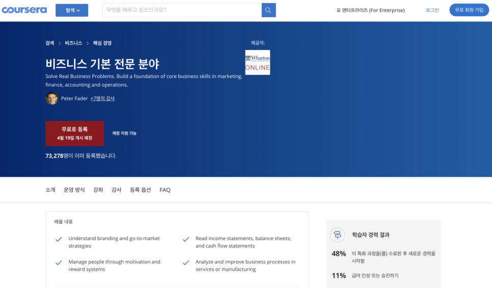 ‘Coursera’는 MOOC를 부흥시킨 선두주자이며 많은 대학 및 기관과의 협업으로 MOOC 산업을 발전시키고 있습니다. 경영, 컴퓨터 공학, 데이터 과학, 언어 학습 등 다양한 주제가 있으며, 자기 주도형 퀴즈 및 실습 프로젝트를 통해 학습한 내용을 심도 있게 이해할 수 있습니다. 4,500만 명 이상이 학습을 하는 거대한 온라인 교육의 장이기에 유의미한 피드백을 많이 받을 수 있습니다.