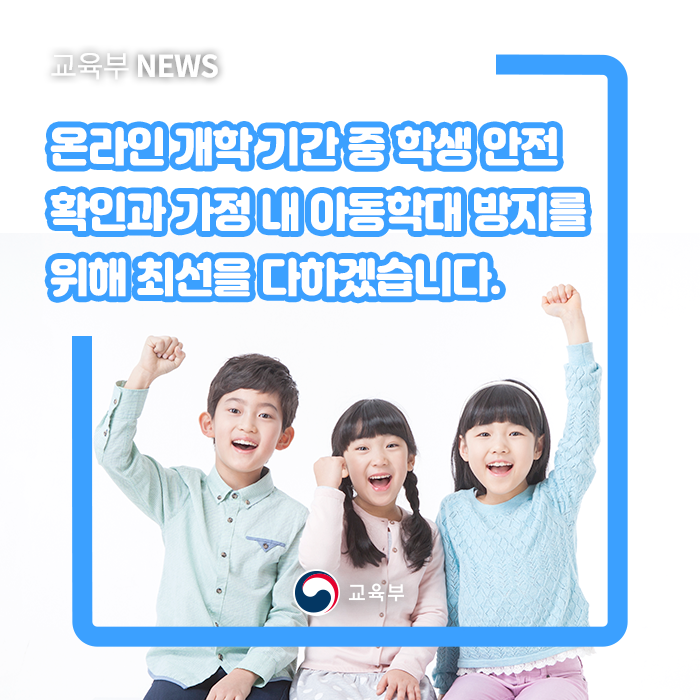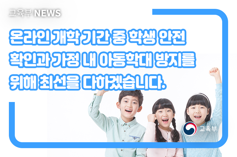 온라인 개학 기간 중 학생의 소재와 안전 확인, 가정 내 아동학대 방지를 위해 최선의 노력을 하겠습니다.