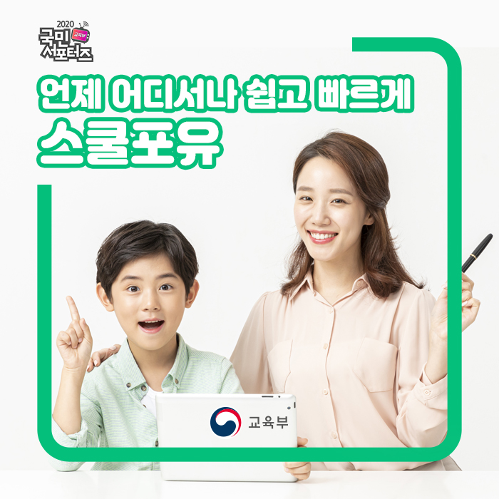 학생들과 학부모님을 위해 탄생한 ‘스쿨포유’라는 알찬 콘텐츠 덕분에 학생들이 학교에 갈 수 없는 상황에 직면하더라도 걱정 없이 양질의 수업을 받을 수 있기를 바랍니다.