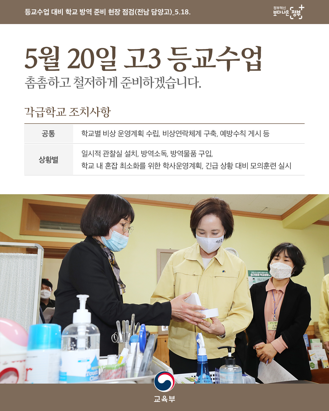 5월 20일 고3 등교 수업에 대비하여 보다 철저하게 학교 방역을 준비하고 있습니다. 본문