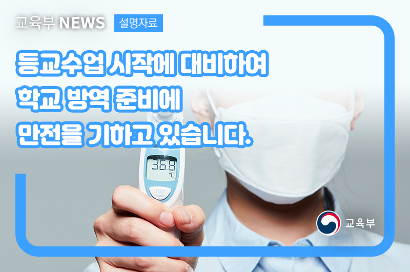 교육부는 매주 신학기 개학준비 추진단 회의를 개최하여 시도교육청 부교육감과 함께 안정적인 등교수업을 위한 현장 지원 방안을 논의하여 필요한 사항을 지원해 오고 있으며, 보건당국과 상시적 협력체계를 구축하여 코로나19 상황 변화에 따른 학교의 방역에 필요한 사항 점검하는 등 등교수업 시작에 대비하여 학교 방역 준비에 만전을 기하고 있습니다.