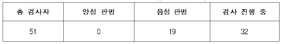 - 20명은 선별진료소 판단 하에 유증상자가 아니라 검체 체취 안 함