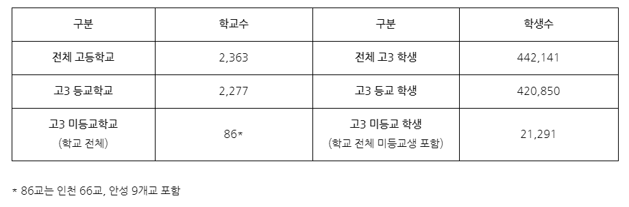 코로나19 고등학교 등교수업 관련 현황