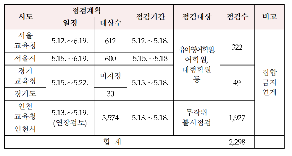 1. 이태원 지역 관련 학원 등에 대한 방역점검 조치 사항 (서울․인천․경기)