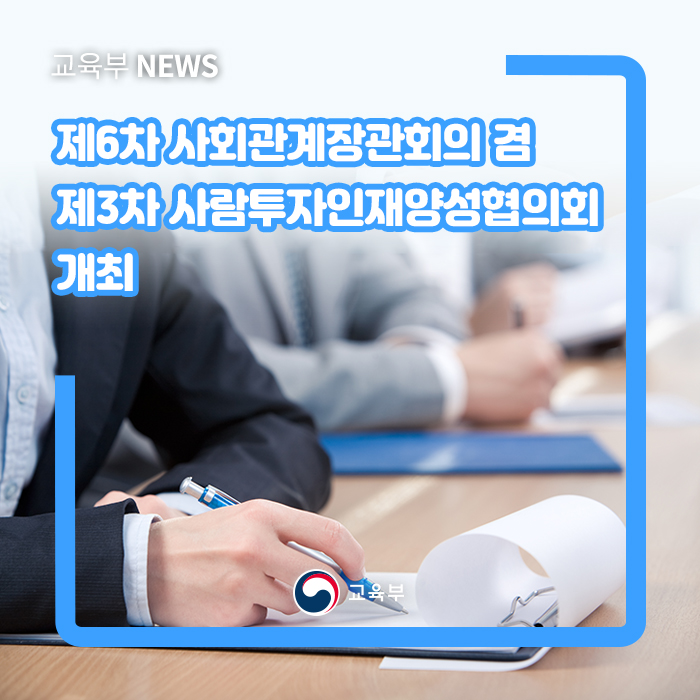교육부(부총리 겸 교육부장관 유은혜)는5월 22일(금), 정부서울청사에서 제6차 사회관계장관회의 겸 제3차 사람투자인재양성협의회 연석회의를 개최한다. 이번 회의에서는 코로나19로 인해 달라지고 있는 일상을 ‘포스트 코로나(Post-COVID19)’라고 부르며 주목하고 있는 현실을 반영하여, 교육·환경 분야의 안건을 바탕으로 ‘더 나은 미래란 무엇인가?’에 대한 사회부처의 의견을 수렴할 예정이다.