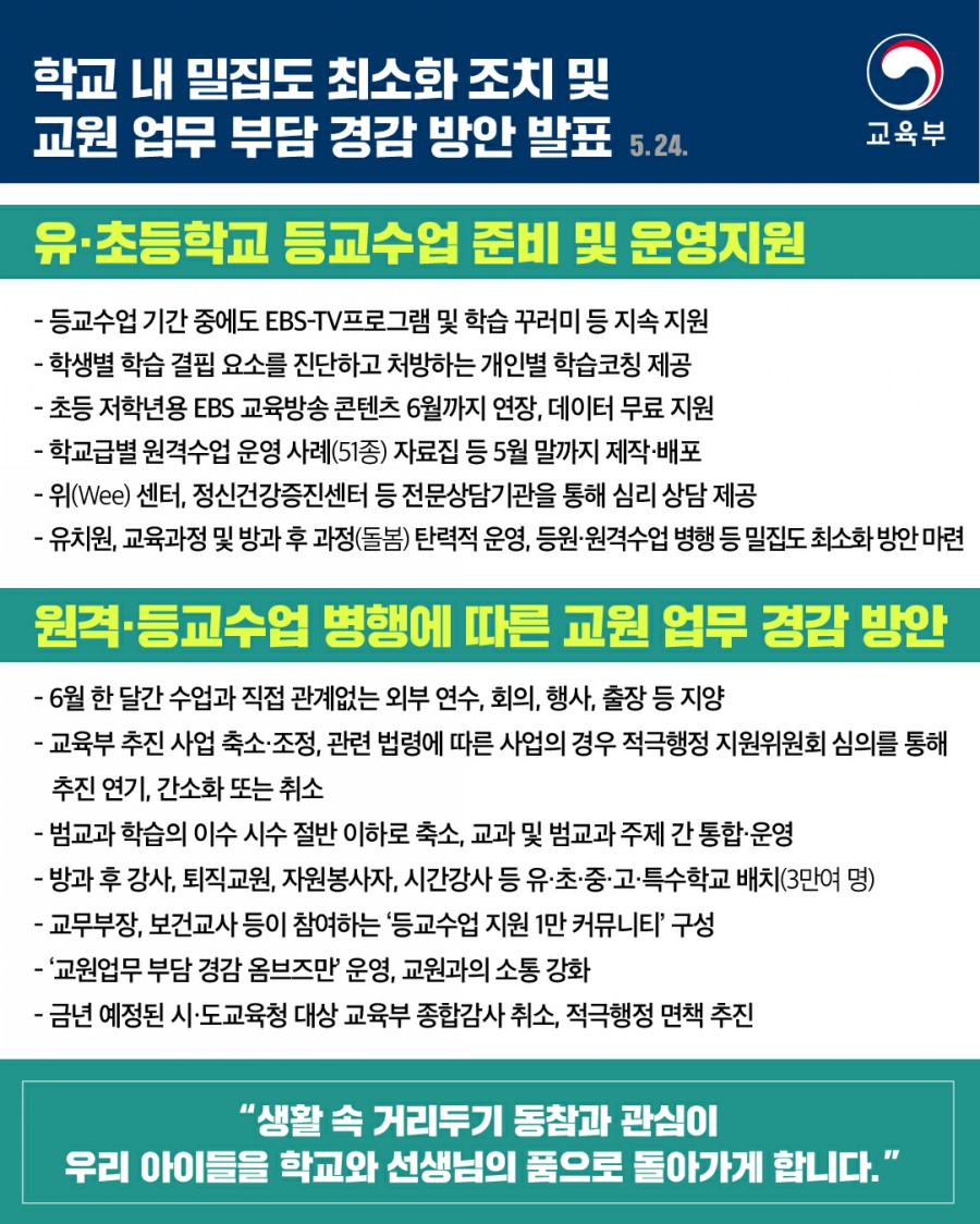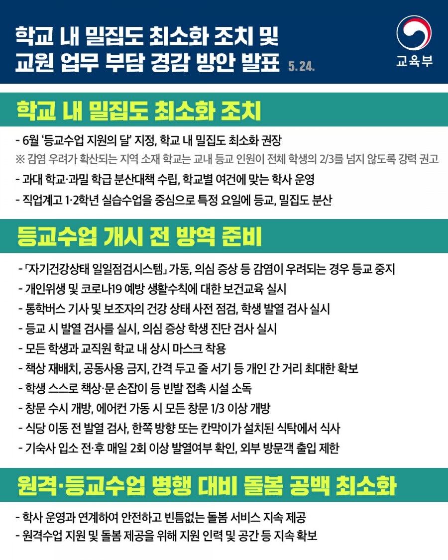 [5월 27일 등교수업 및 방역 활동 지원 방안] 본문
