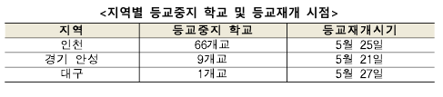 | 교육부-인천교육청, 5월 25일 등교수업 재개 결정 (1) | 2020.05.22 |