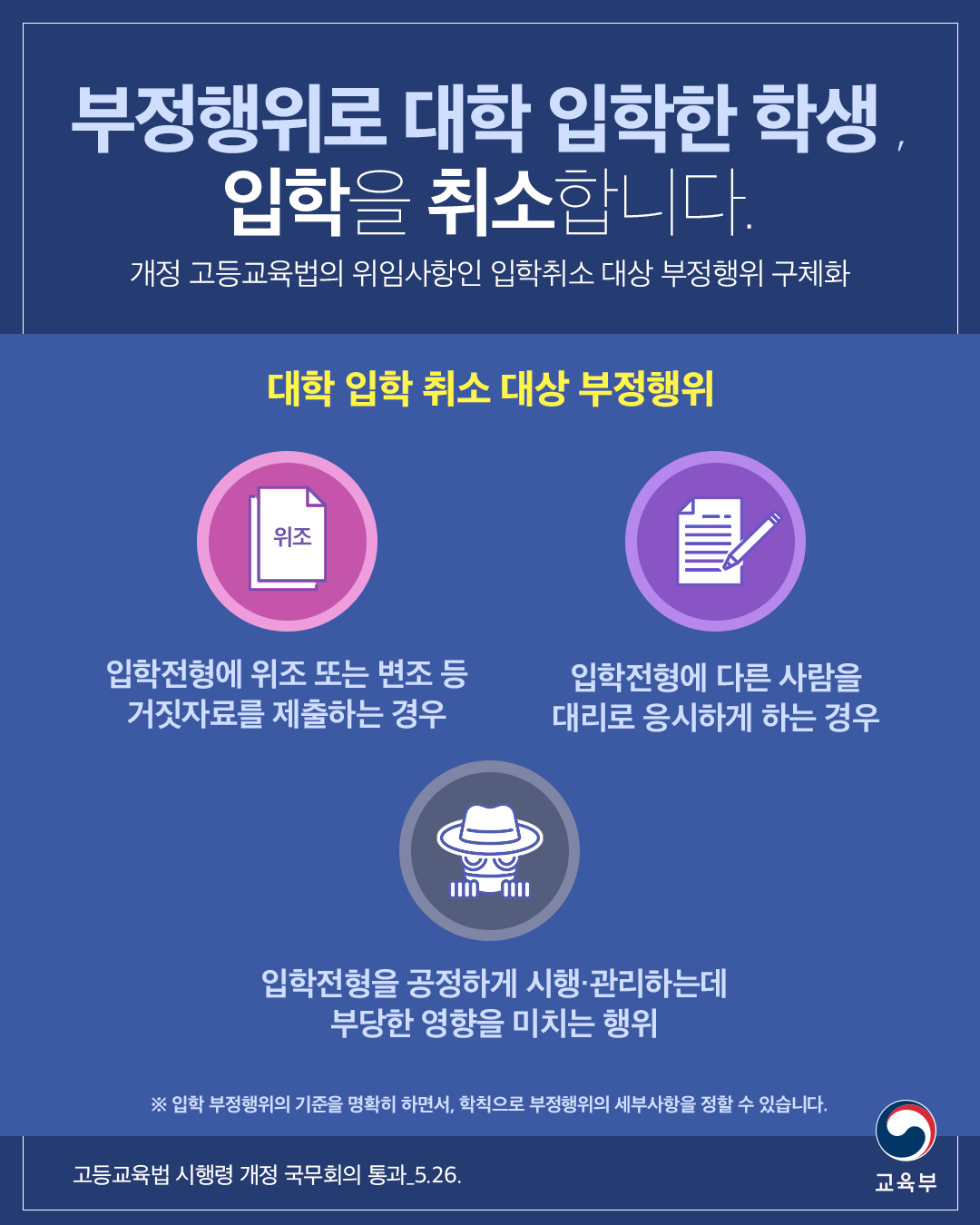 부정행위로 대학 입학한 학생, 입학을 취소합니다 본문