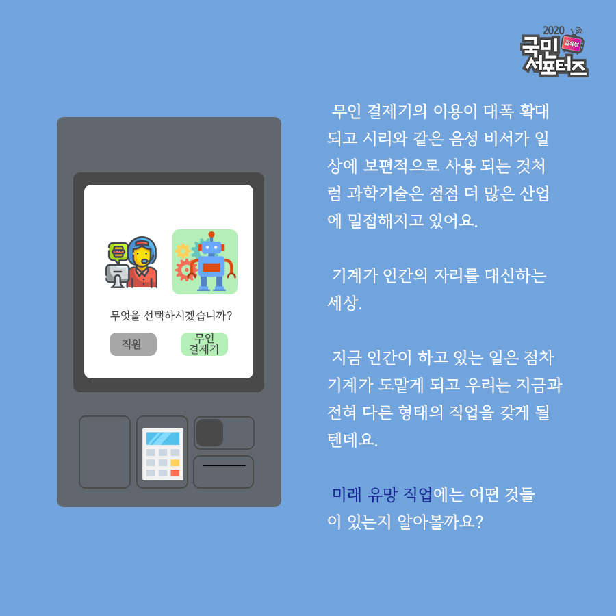 오늘날 각종 매장에서 무인결제기를 사용하고 시리와 같은 음성 비서 서비스를 이용하는 건 더 이상 예삿일이 아니죠.이렇듯 과학기술은 우리의 삶과 밀접한 관계를 가지고 있습니다.