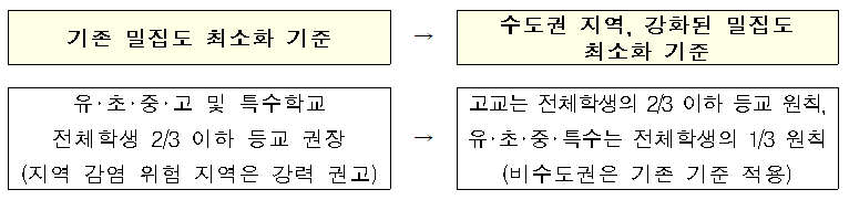 수도권 지역 대상, 강화된 학교 밀집도 최소화 조치 시행 본문