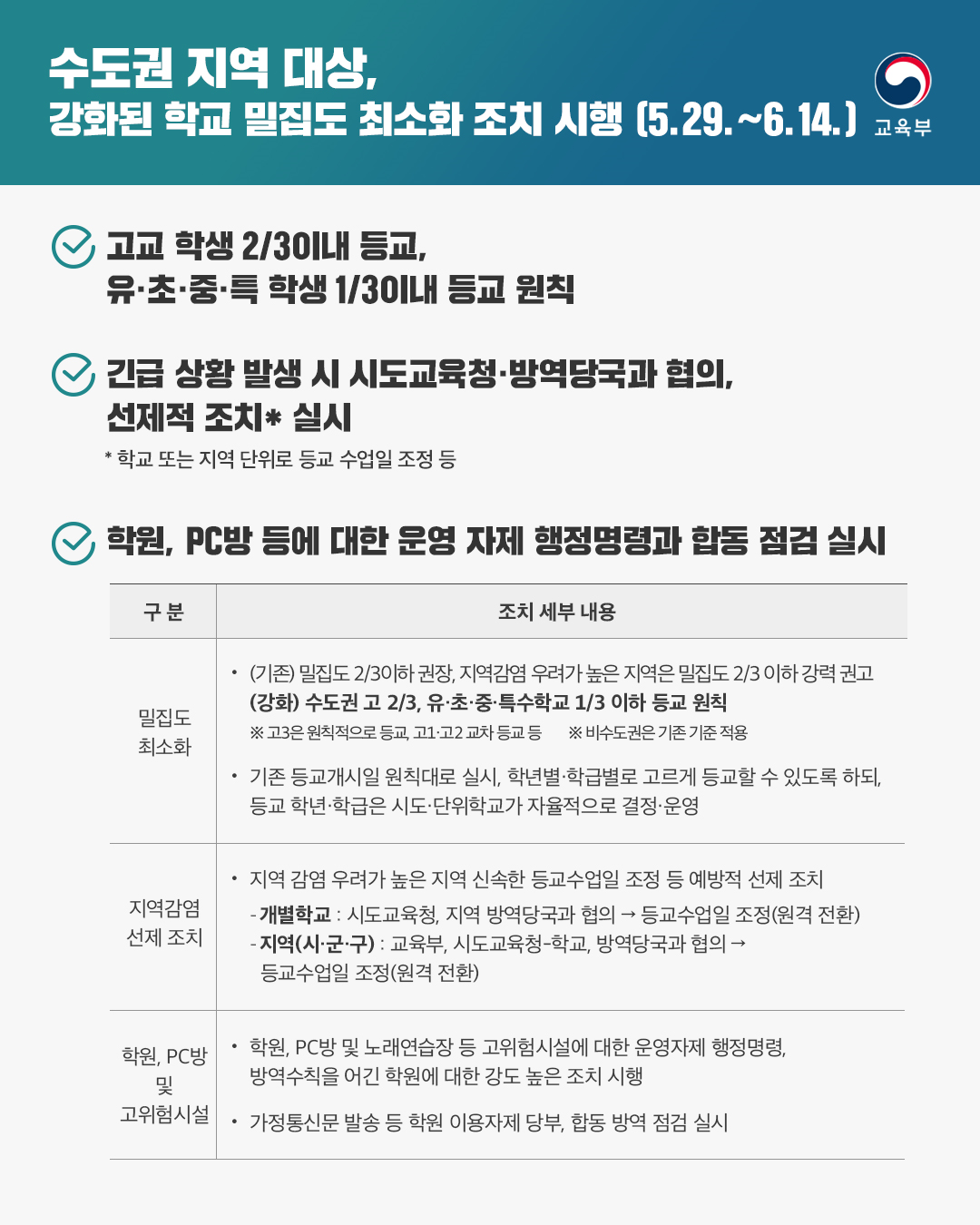 -고교생 2/3 이내, 유초중특수학교 학생 1/3 이내 등교