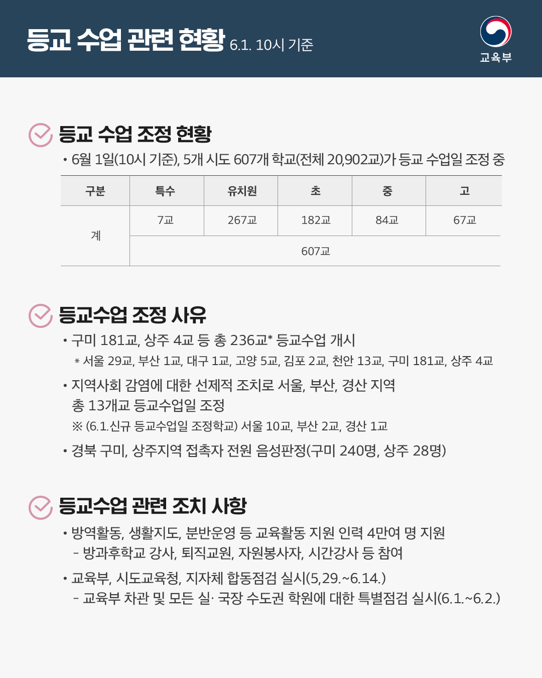 등교 수업 관련 현황(6/1) 본문