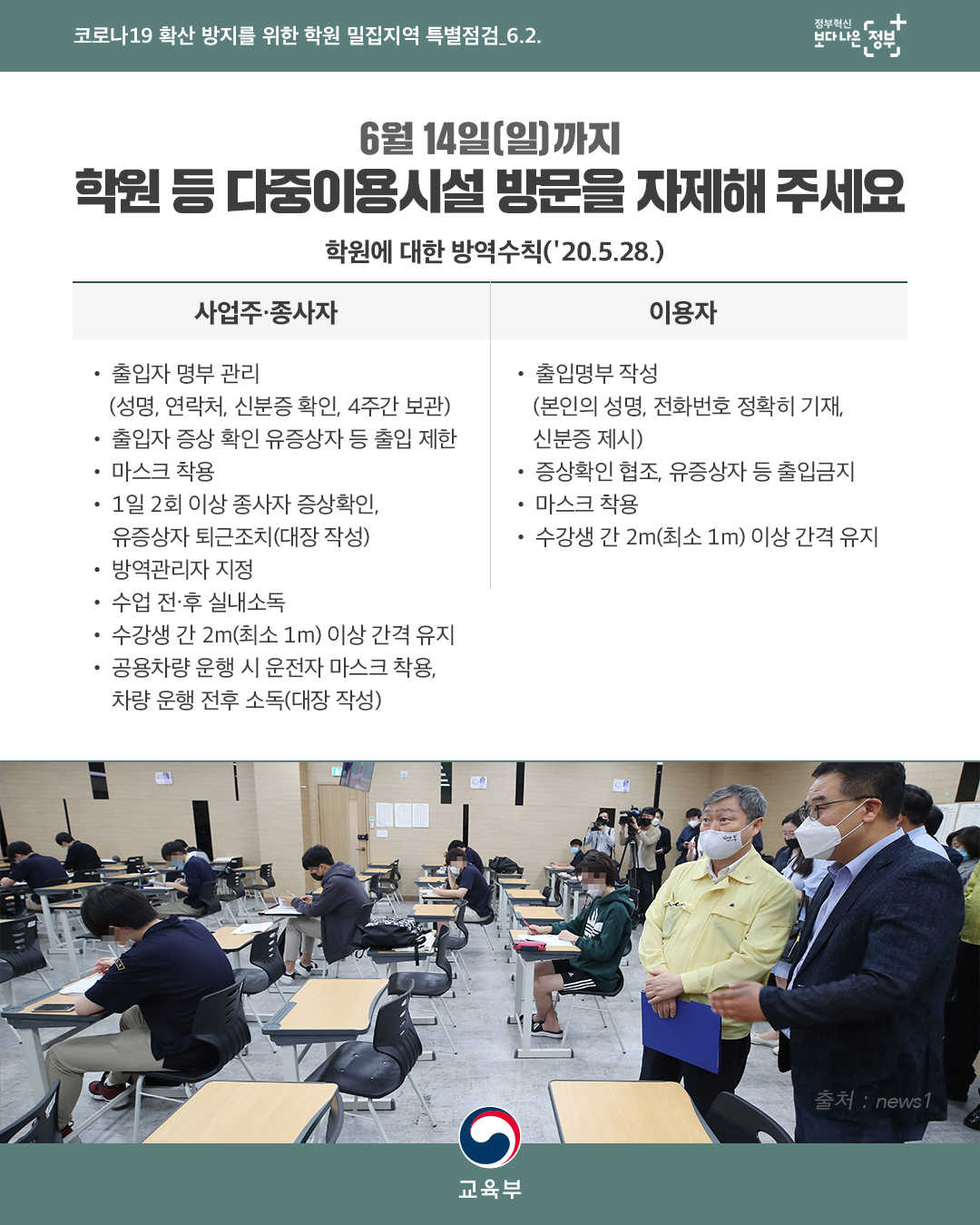 #학교방역 #등교수업 #다중이용시설 #방역수칙 #학원 #출입명부