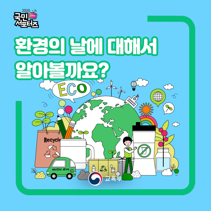 매년 6월 5일은 세계 환경의 날입니다. 환경에 대한 사람들의 인식을 제고하고 관심과 환경보호의 실천을 촉구하기 위해 만든 세계적인 기념일인데요.