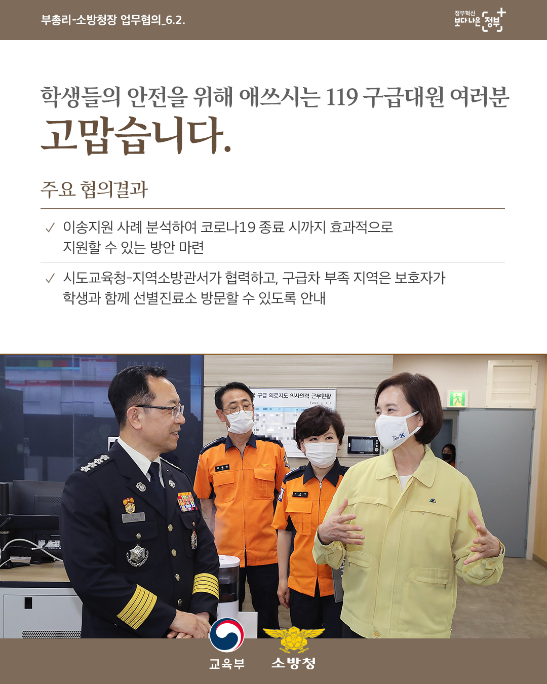 소방청장님과 효과적인 이송지원 방안과 협력을 논의했습니다.