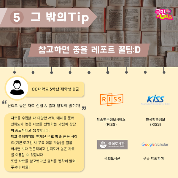 이번에는 인터뷰를 통한 선배들의 레포트 꿀팁을 알아볼까요?"