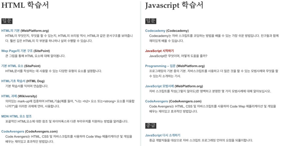MDN의 목표는 수강생들을 ‘초보자’에서 ‘전문가’로 이끄는 것이 아닌 ‘안정된 단계’로 이끄는 것을 삼고 있습니다. 그 이후 본인만의 스타일을 찾도록 편하게 공부할 수 있는 여건을 조성해줍니다. CSS, HTML, JavaScript 학습서 하위 분류 입문, 중급, 고급 과정을 수강생이 자신의 수준에 맞게 선택하여 학습을 할 수 있습니다.