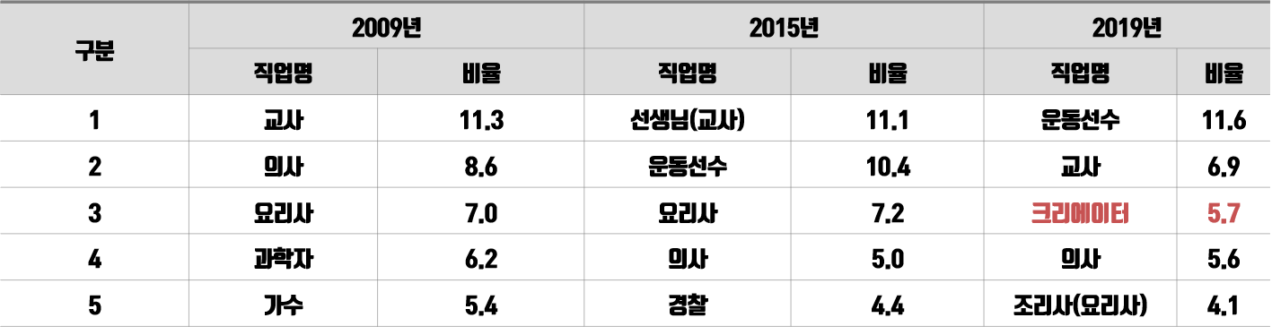 1인 미디어 시대, 초등학생 선호 직업은? 본문