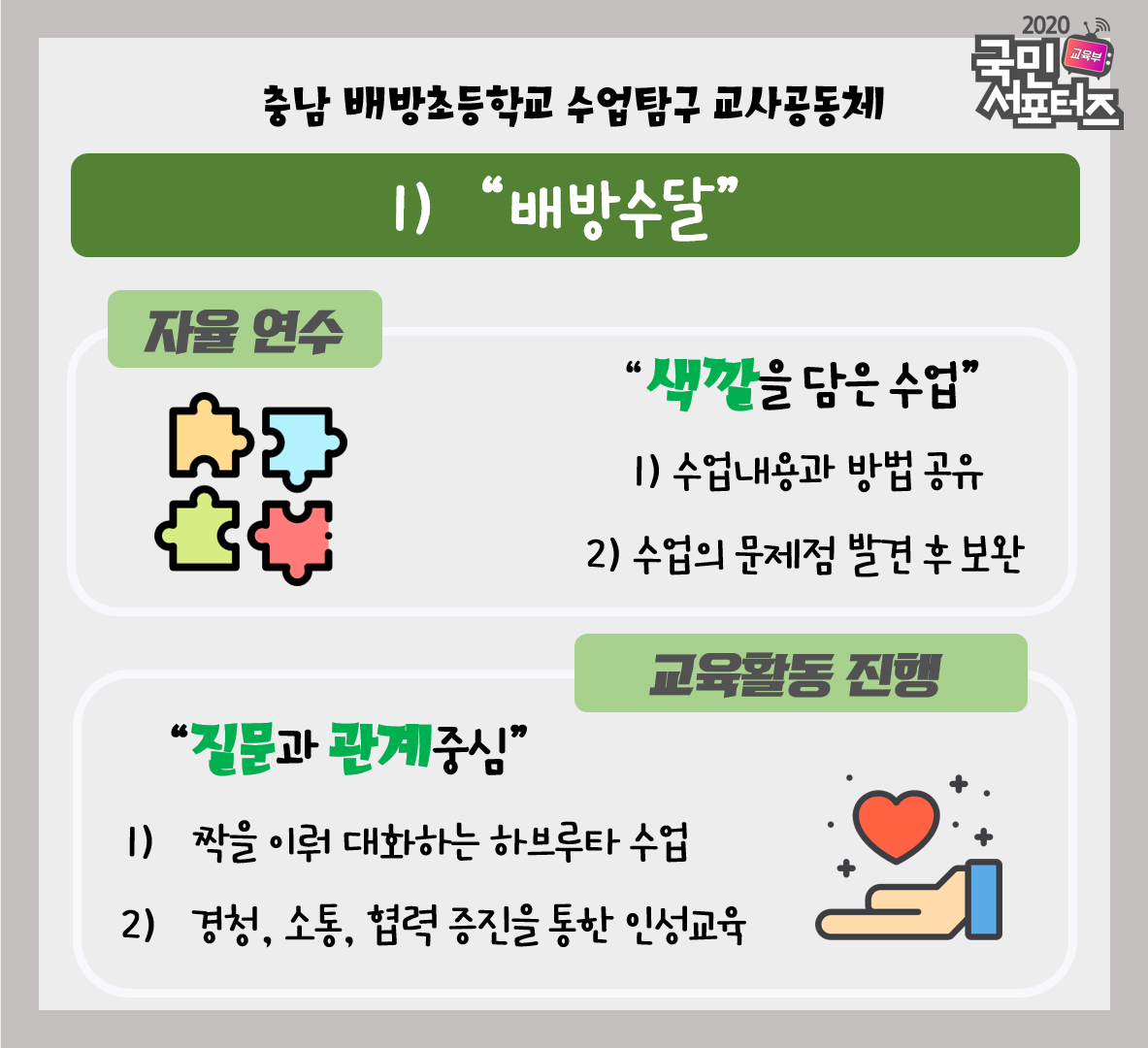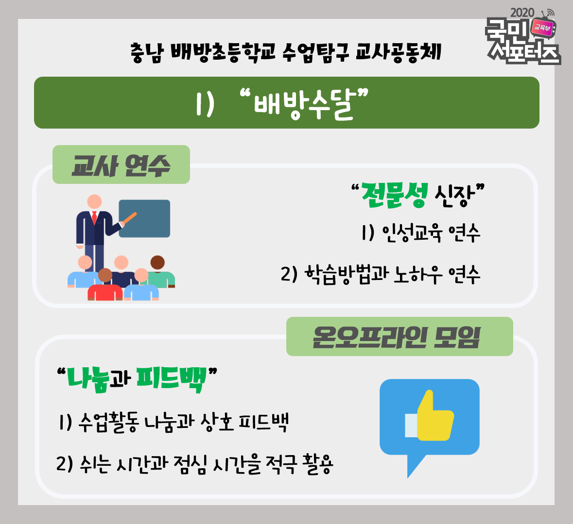 1. 배방수달 : 충남 배방고등학교 수업탐구 교사공동체