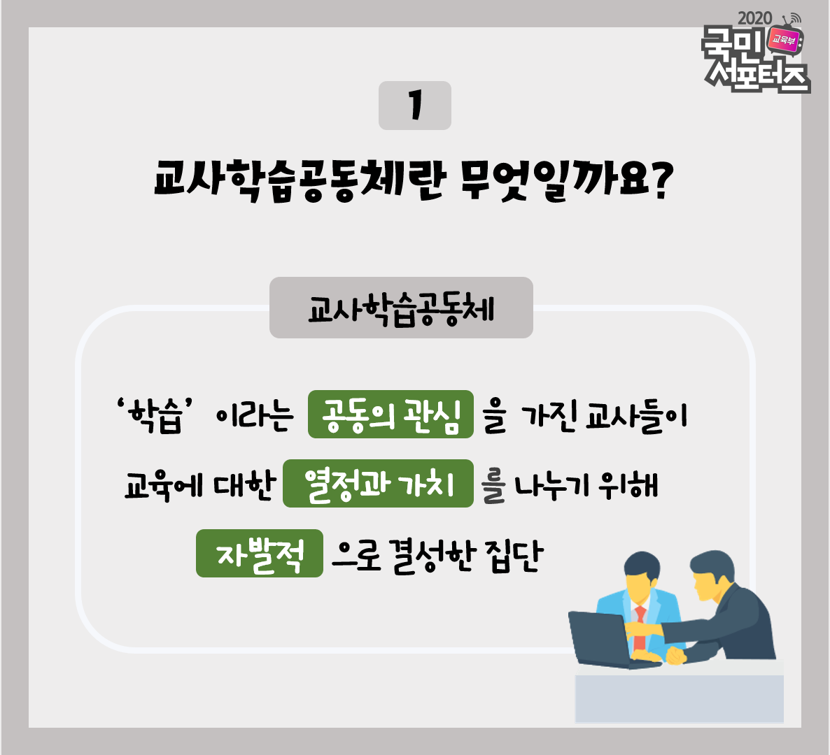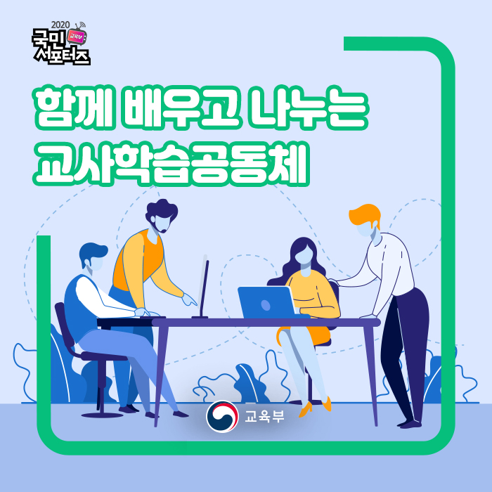 교사학습공동체를 알고 계시나요? 계속해서 변화하는 교육현장에서 교사학습공동체의 운영에 대한 관심이 뜨거워지고 있는데요. 그렇다면 교육부 국민 서포터즈와 함께 교사학습공동체란 무엇인지, 또 어떤 효과를 지니고 있는지 함께 살펴볼까요?