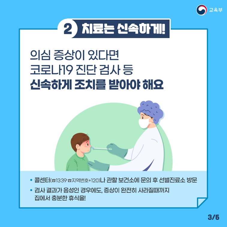 증상이 있으면 등교·등원을 하지 말고 먼저 학교에 알려주세요